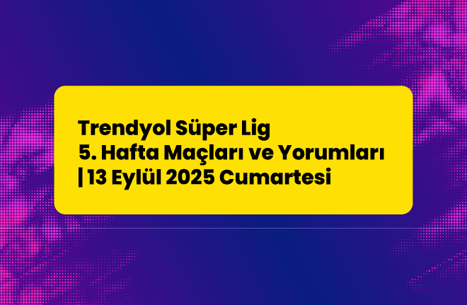 Trendyol Süper Lig’in 5. haftasında 13 Eylül Cumartesi günü oynanacak maçlar, TFF’nin resmi programına göre şu şekilde